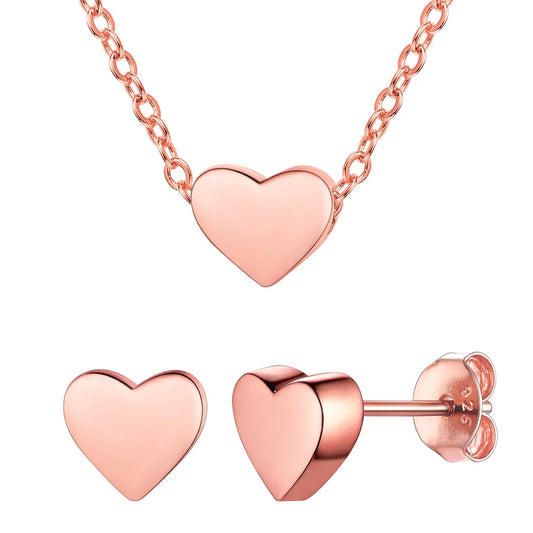 925 Sterling Silver Heart Necklace and Stud Earrings Sets for Women Jewelry Collection Birthday Gift - Rose Gold